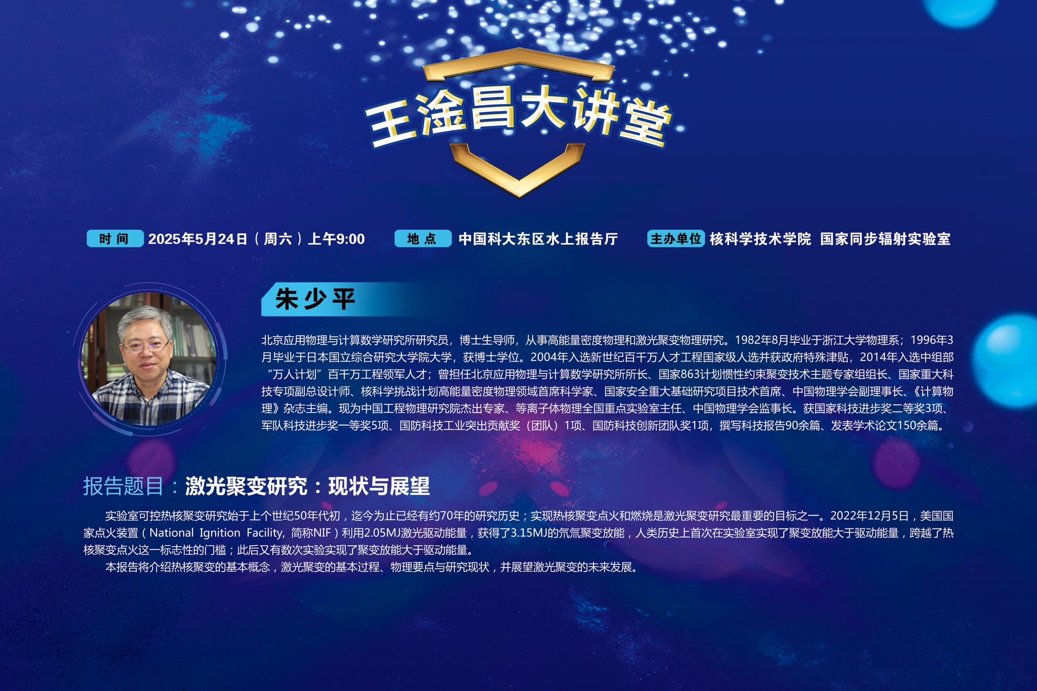 王淦昌大讲堂为核科学技术学院、国家同步辐射实验室主办的系列报告会,本次大讲堂特邀北京应用物理与计算数学研究所朱少平研究员来我校做报告。