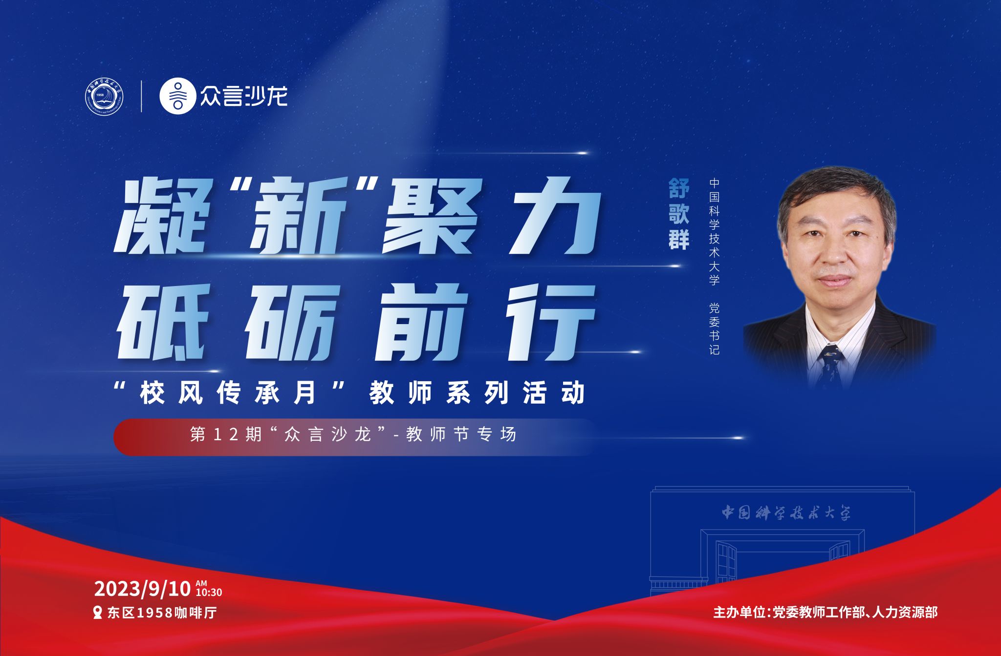 12众言沙龙——教师节专场(嘉宾:校党委书记 舒歌群) 910日上午10:30 东区1958咖啡厅(报名链接附后)